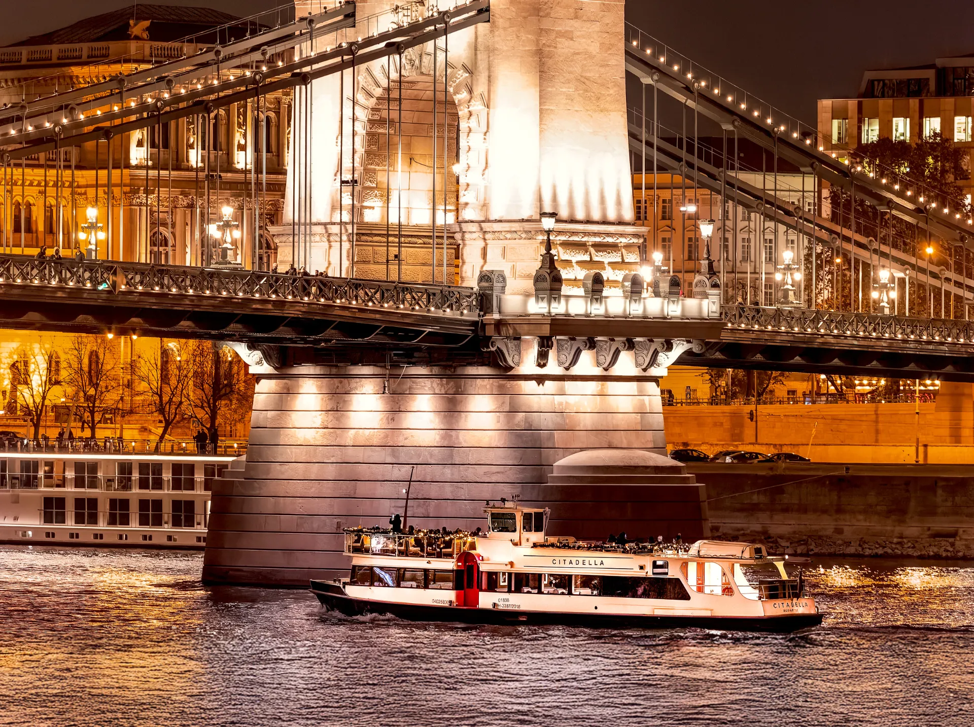 A delightful evening cruise on the Danube with a delicious dinner and live entertainment.